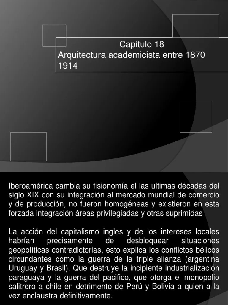 5/29/12 iberoamrica cambia su fisionoma el las ultimas dcadas del siglo xix con su integracin al mercado mundial de comercio y de produccin, no fueron homogneas y existieron en esta forzada integracin reas privilegiadas y otras suprimidas la accin del capitalismo ingles y de los... .. 06.05.2015 · la arquitectura del academicismo la fundación de la academia primer periodo: